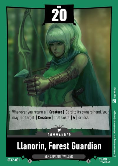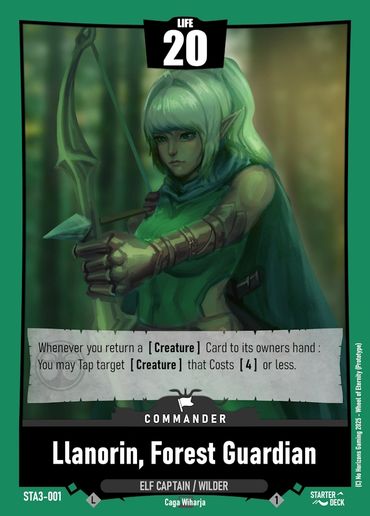 The deck consists of a Primary win condition based around Llanorins primary Ability. Every time you successfully return a card that Costs 4 or less back to its owners hand (either yours or your opponents) you get to stall the board by forcing a Creature into a Tapped state. This can be done on either your turn or your opponents.