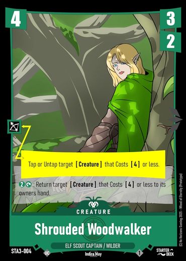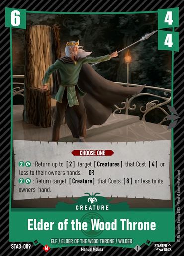 The Ranger occupies the colour GREEN on the Wheel, and is a deck designed around Board Control. Ranger Cards have the ability to Tap, Untap or Bounce Creatures back to the hand, either your own or your enemies. They can severely halt tempo, and in some cases, even throw creatures into the bottom of the deck.